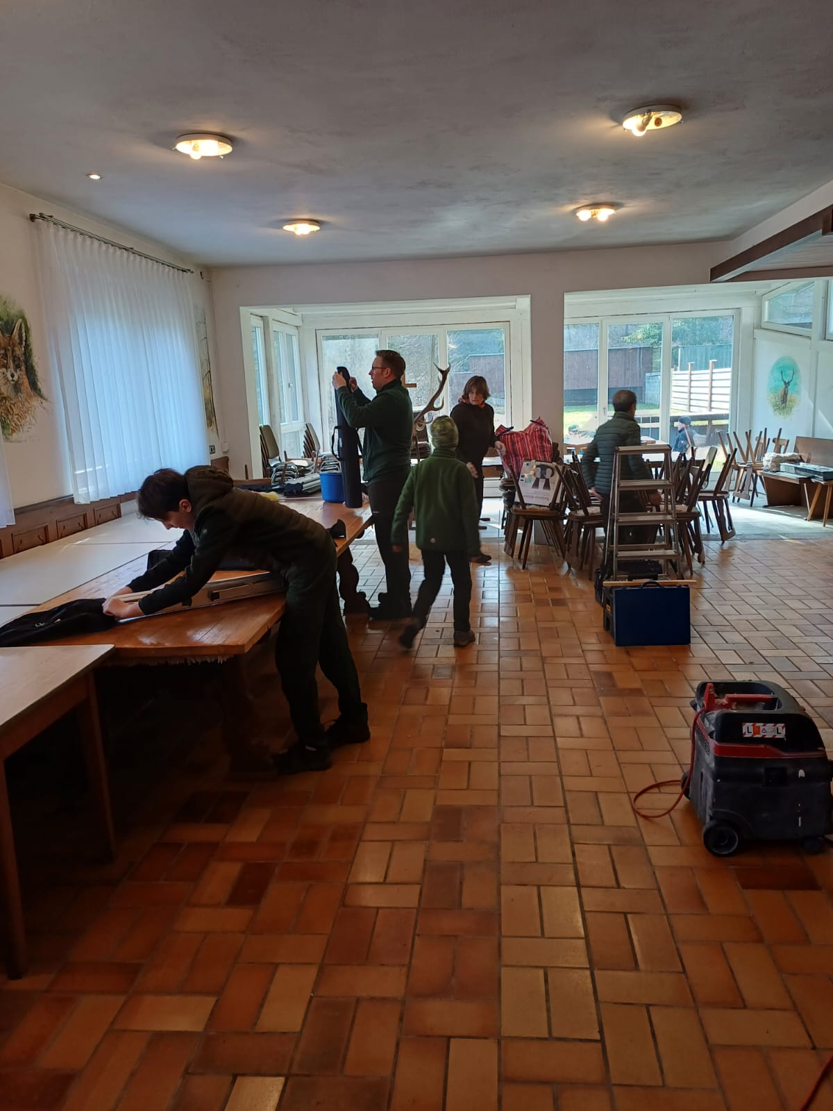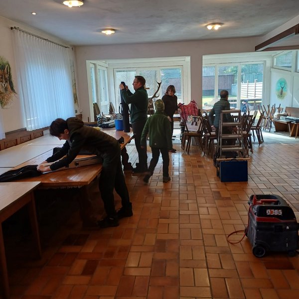 Bei strahlendem Sonnenschein befreiten 18 Helfende das Jägerhaus aus seinem Winterschlaf und von Staub, Laub und Spinnenweben. Innen und außen wurde geputzt, repariert und entrümpelt. Gegen 13:00 Uhr war alles erledigt und die Helfenden von 10 bis 83 Jahren konnten sich an dem im neuen Glanz erstrahlenden Jägerhaus erfreuen. Ganz herzlichen Dank an die fleißigen Helfenden!