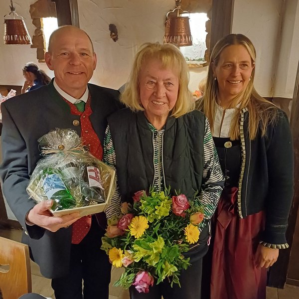 Mit einem Überraschungsständchen gratulierten die Parforcehorn-Bläser Inge Freifrau zu Dalwigk zu ihrem 85. Geburtstag. Matthias Michelberger und Astrid Hemmrich überreichten ihr im Namen der KJV ein Präsent und bedankten sich für ihren seit über 50 Jahre währenden aktiven Einsatz bei den Bläsern der Kreisjägerschaft.