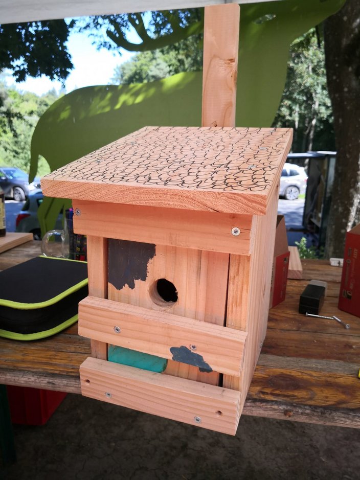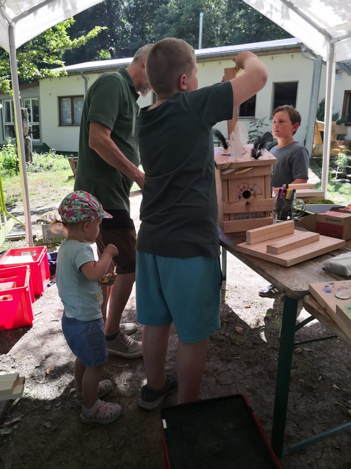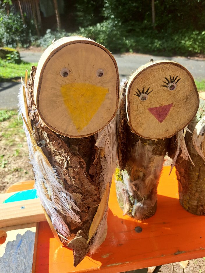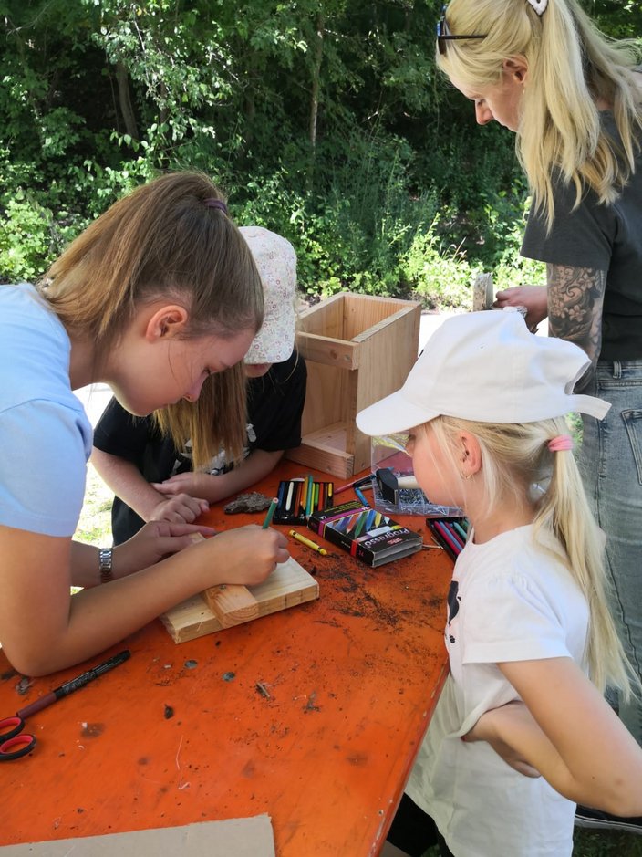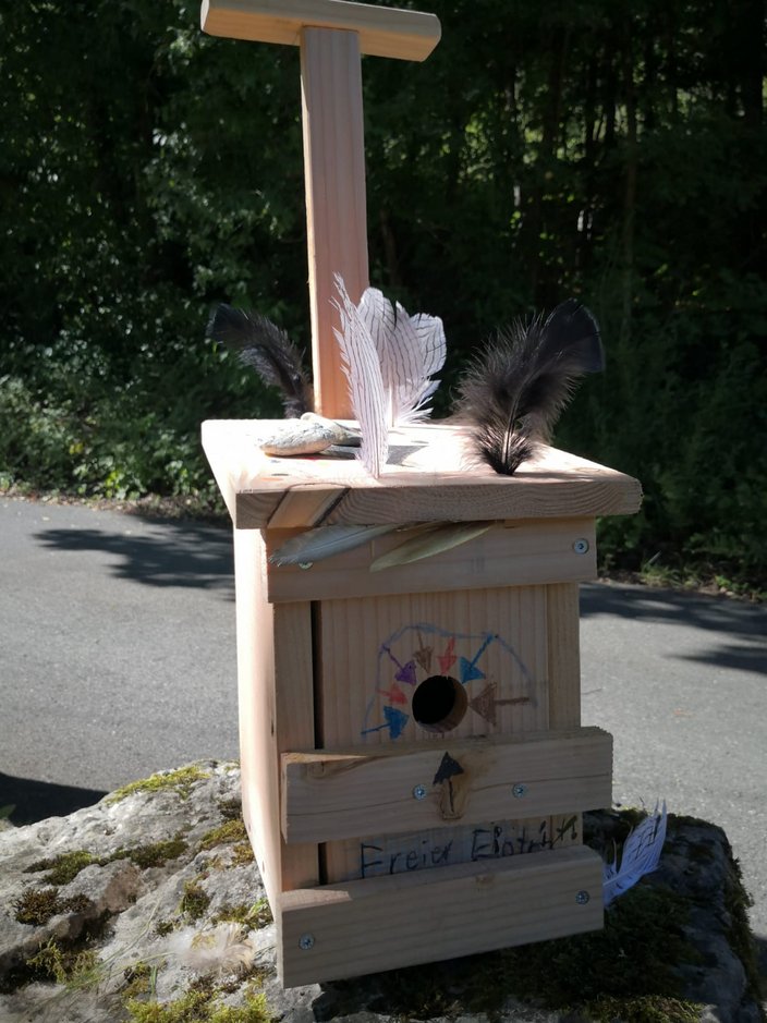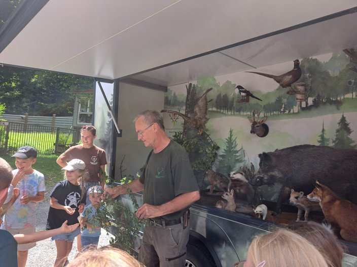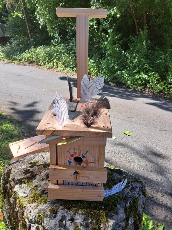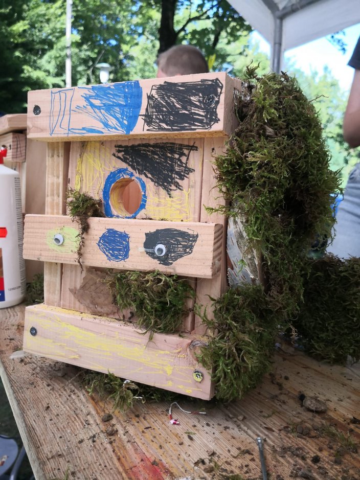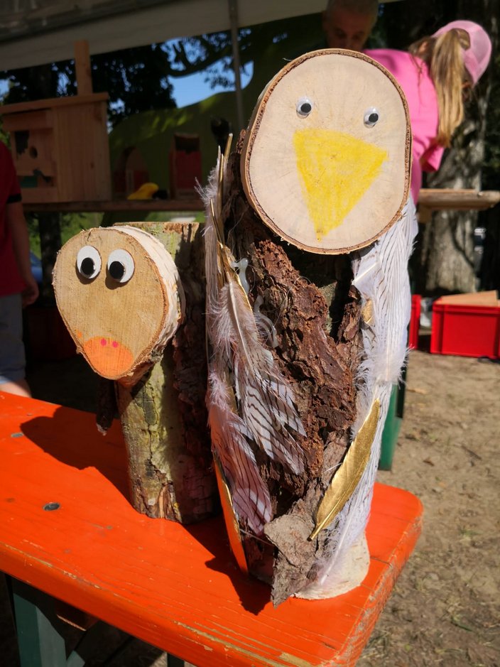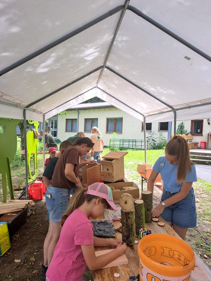 Am Freitag 8.8.25 verbrachten 15 Kinder im Rahmen des Ferienprogramms einen „vogelwilden Tag bei den Jägern“ im Schüpferloch. Unter der Leitung von Lisa Wiebers und Magdalena Schütz-Becke durften die 7 Mädchen und 8 Jungen mit dem Lernort Natur Team mehr über heimische Waldvogelarten lernen, den Lernort Natur Anhänger inspizieren, sowie Nistkästen und Vögel aus Naturmaterialien bauen. Das Holz hierfür wurde freundlicherweise von der Zimmerei Mayer zur Verfügung gestellt und vorbereitet. Die jungen HandwerkerInnen durften ihrer Kreativität freien Lauf lassen und so entstanden vielfältig gestaltete Objekte, die stolz präsentiert und mit nach Hause genommen wurden. Zur Stärkung gab es wilde Hotdogs, Limo und ein Quiz zum Abschluss. Danke an alle helfenden Hände aus dem Lernort Natur-Team!