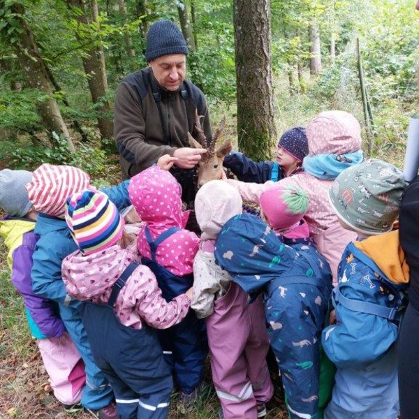 Der Kindergarten Rengershausen veranstaltete kürzlich einen spannenden Waldtag im Revier Rengershausen II, bei dem sich alles um "Das Eichhörnchen und die Zaubernuss" drehte. Die Kinder machten sich gemeinsam mit dem Eichhörnchen und ihren Erzieherinnen auf die Suche nach der verlorenen gegangenen Zaubernuss und konnten dabei viel über das Leben der kleinen Waldbewohner und die Pflanzenwelt des Waldes lernen. Es sind den Kindern einige Waldbewohner begegnet, darunter ein Reh, ein Dachs, ein Fuchs, ein Eichhörnchen und ein Igel.