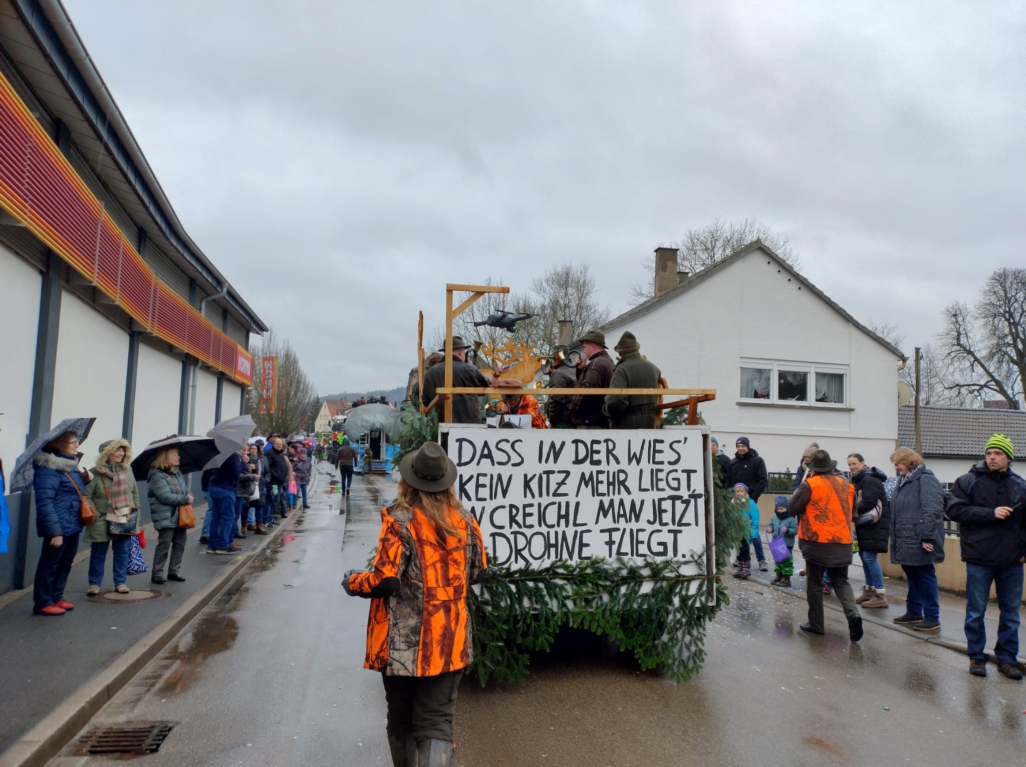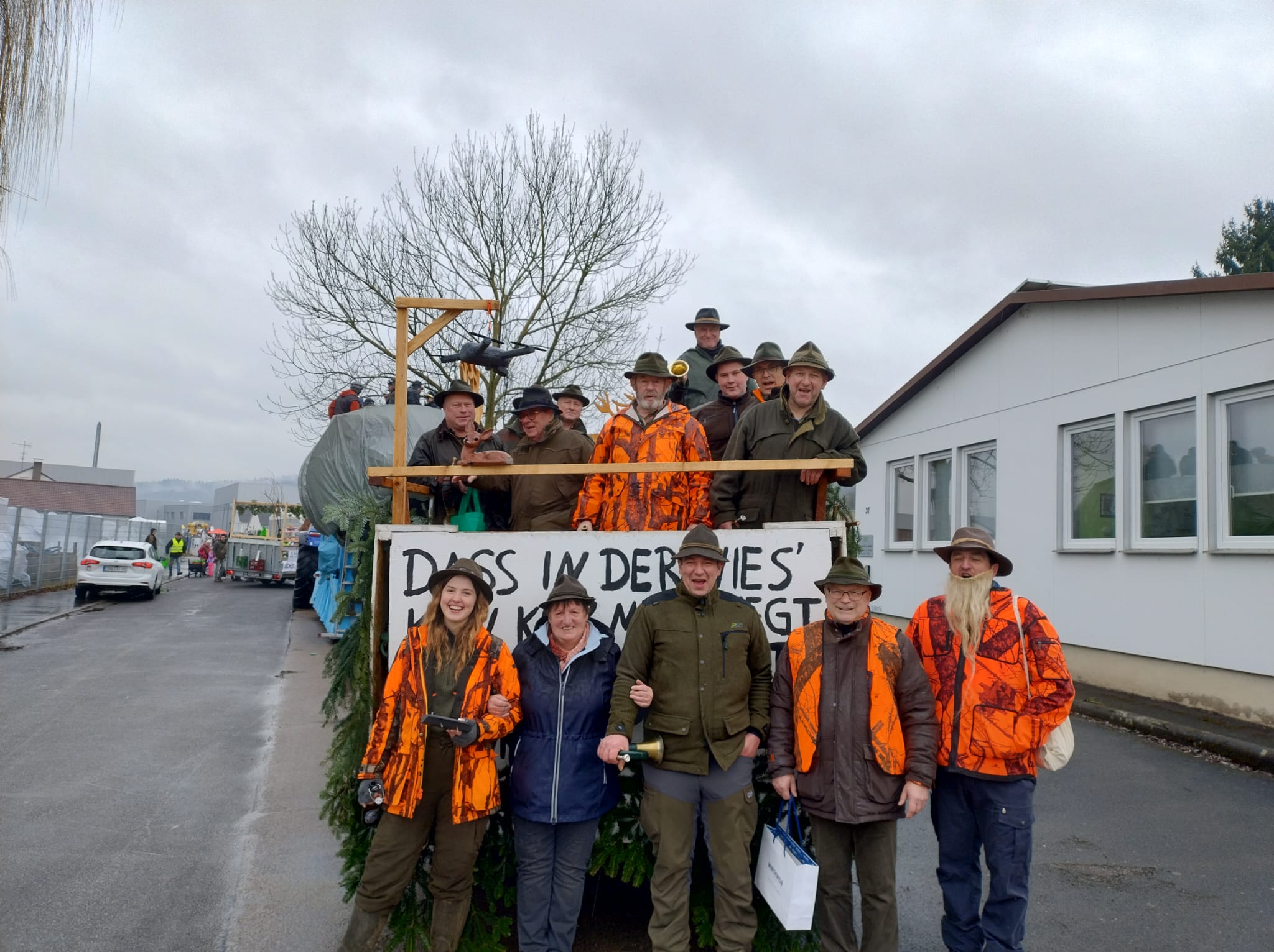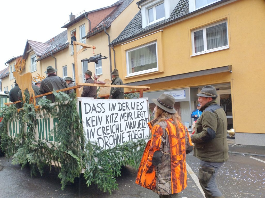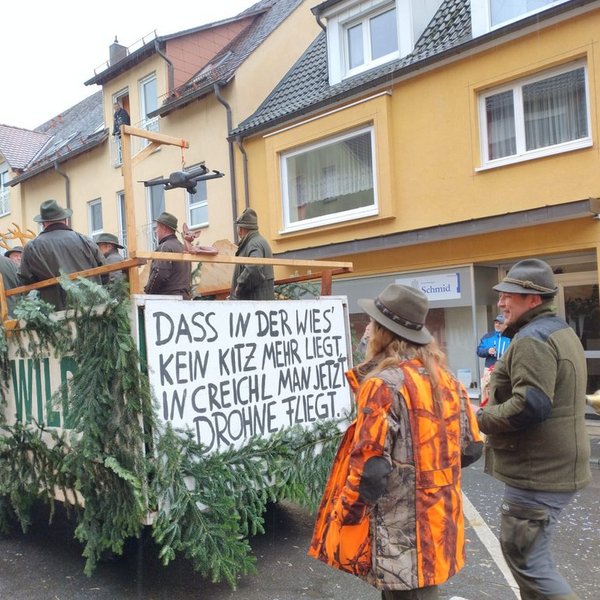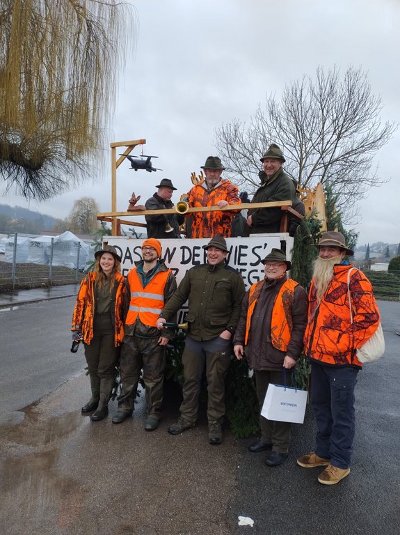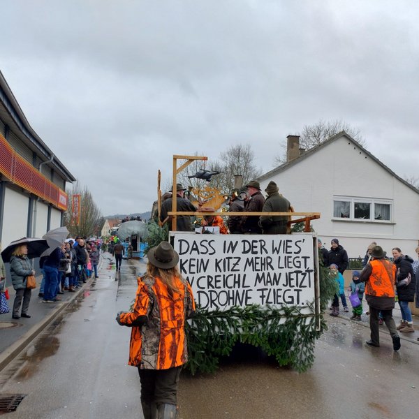 Am 12.02.2025 fand wieder der Creglinger Pferdemarkt statt – diesmal unter dem Motto „Creichl – da hebst du ab!“. Auch in diesem Jahr nahm der Hegering Creglingen mit einem Festwagen am Umzug teil. Trotz widrigem Wetter wurde passend zum Motto der Einsatz der Jäger in der Kitzrettung gezeigt und ein Statement zu „Wald und Wild“ gesetzt. Das Ganze unter den jagdlichen Klängen der Jagdhornbläser aus Creglingen und Bad Mergentheim, die ohne Verstärker aus voller Kraft gegen die Lautsprecher der anderen Festwagen anspielten. Die Begeisterung und der Applaus des Publikums zeigten wieder einmal, dass unser Engagement in der Bevölkerung ankommt. Vielen Dank an alle Helfer, die zum Gelingen des Umzugs beigetragen haben.